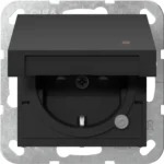 Stopcontact met randaarde, verhoogde aanraakbeveiliging, klapdeksel en controlelamp, Systeem 55, zwart mat. Een glimlampenelement wordt standaard meegeleverd.