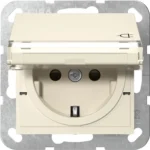 Gira wandcontactdoos randaarde met verhoogde aanraakbeveiliging klapdeksel en tekstkader Systeem 55 creme glans (455701)