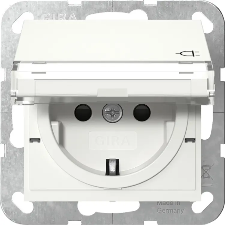 Gira wandcontactdoos randaarde met verhoogde aanraakbeveiliging klapdeksel en tekstkader Systeem 55 wit glans (455703)