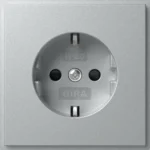 Stopcontact randaarde verhoogde aanraakbeveiliging TX44 aluminium. Niet geschikt voor installatie in vochtige ruimtes vanwege beschermingsgraad IP20. Bij montage moet ook de afdichtflens van het afdekraam worden gebruikt.