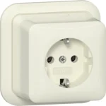Opbouw wandcontactdoos met randaarde, crème. Wordt geleverd met montageplaat en adapter K/P25 (voor een kabelgoot).