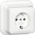 Opbouw wandcontactdoos met randaarde, wit. Wordt geleverd met montageplaat en adapter K/P25 (voor een kabelgoot).