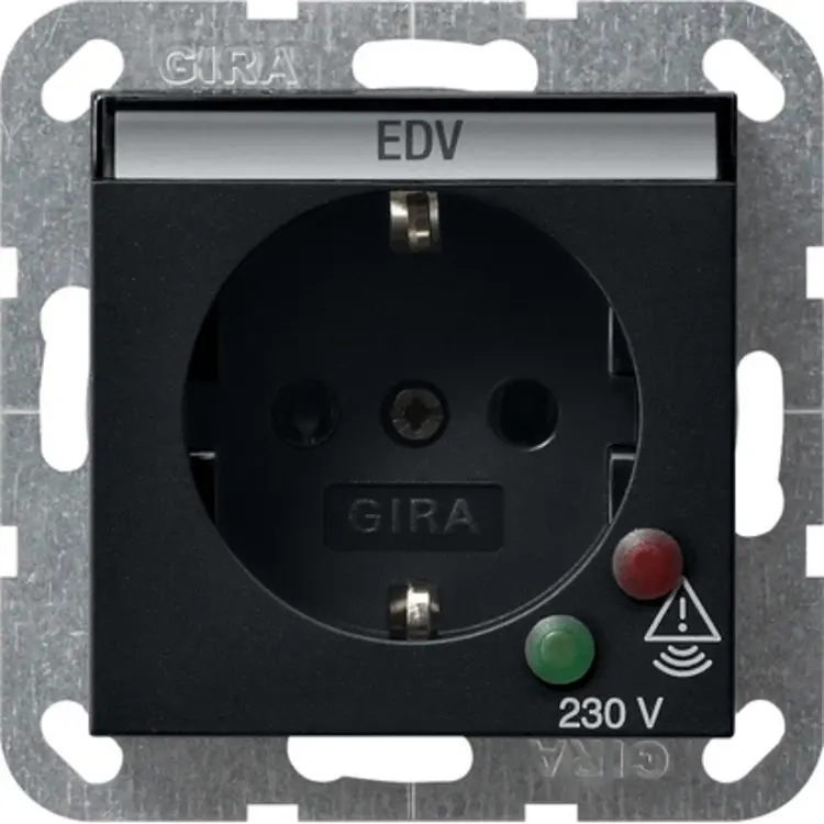 Gira Systeem 55 wandcontactdoos (wcd schakelmat.), overig, zwart, 1 eenheid, beschermingscontact, met signaallamp, uitvoering randaarde, inbouw, 1 modules (bij modulair sys, opdruk/indicatie computervoeding, aansluitwijze steekklem, tekstveld/beschrijvingsvlak, overspanningsbeveiliging,