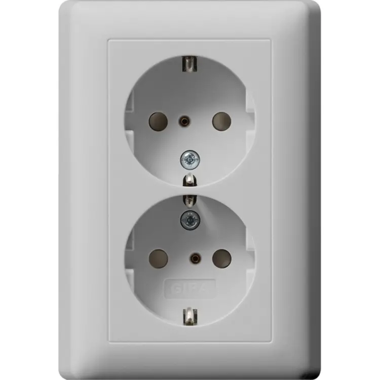 Gira wandcontactdoos randaarde verhoogde aanraakbeveiliging 2-voudig voor enkele inbouwdoos Systeem 55 grijs mat (0783015)