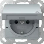 Gira wandcontactdoos randaarde verhoogde aanraakbeveiliging met klapdeksel Systeem 55 aluminium mat (441426)