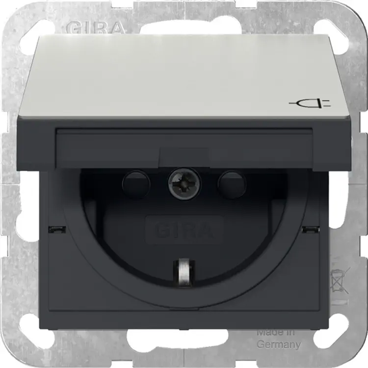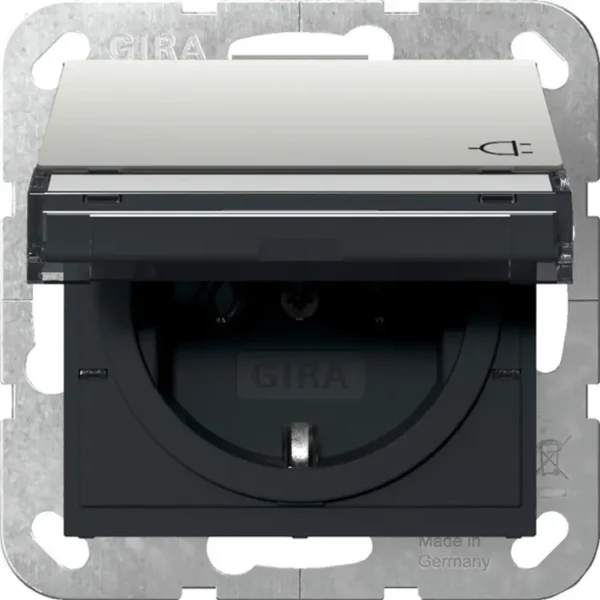 Gira wandcontactdoos randaarde verhoogde aanraakbeveiliging met klapdeksel Systeem 55 edelstaal (4414600)