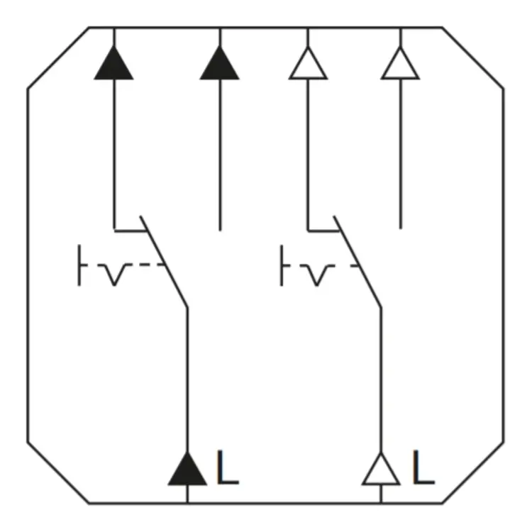 Wissel-/wisselschakelaar (2-voudige wisselschakelaar), voor het schakelen van twee afzonderlijke lichtpunten. Ook geschikt voor wissel-/hotelschakelingen. De schakelaar kan worden gemonteerd in de inbouwdoos met schroefbevestiging en/of bevestigingsklauwen (spreidklemmen). De bedrading is aan te sluiten met steekklemmen. Afdekken met dubbele schakelwip en afdekraam.