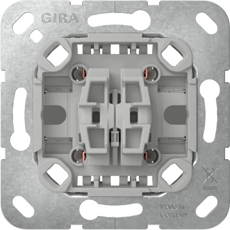 De schakelaar kan worden gemonteerd in de inbouwdoos met schroefbevestiging (niet voorzien van bevestigingsklauwen/spreidklemmen). De bedrading is aan te sluiten met steekklemmen. Afdekken met een dubbele schakelwip en een afdekraam.