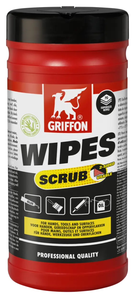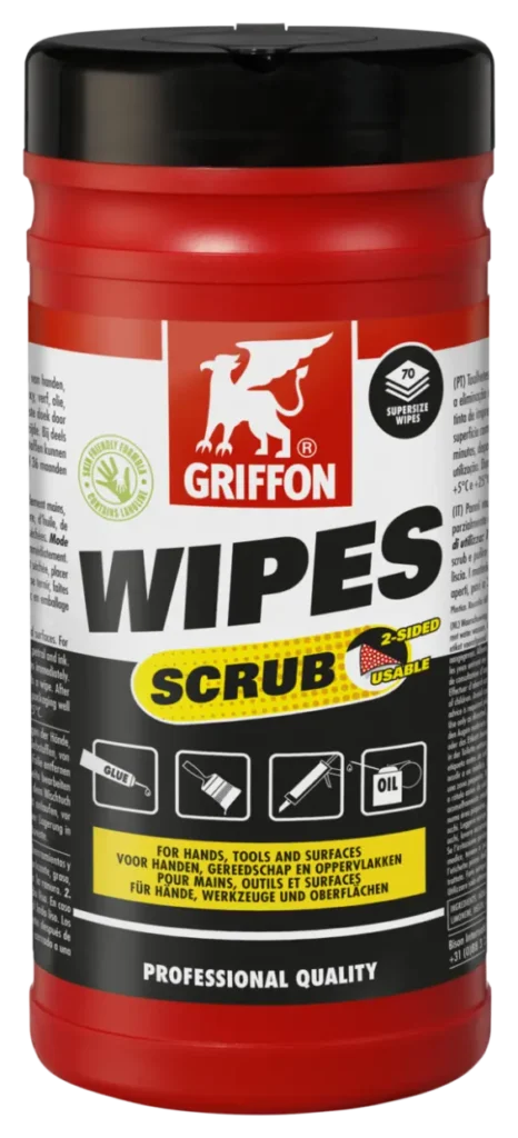 Multifunctionele, professionele reinigingsdoeken met scrub voor het schoonmaken van handen, gereedschap en oppervlakken.
