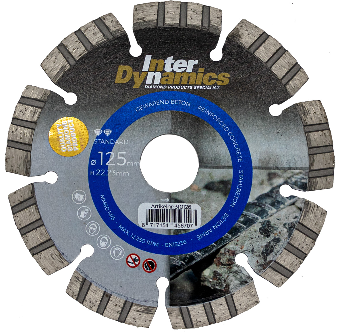 InterDynamics® Beton Standard diamantzaagblad 125mm, asgat 22.23mm