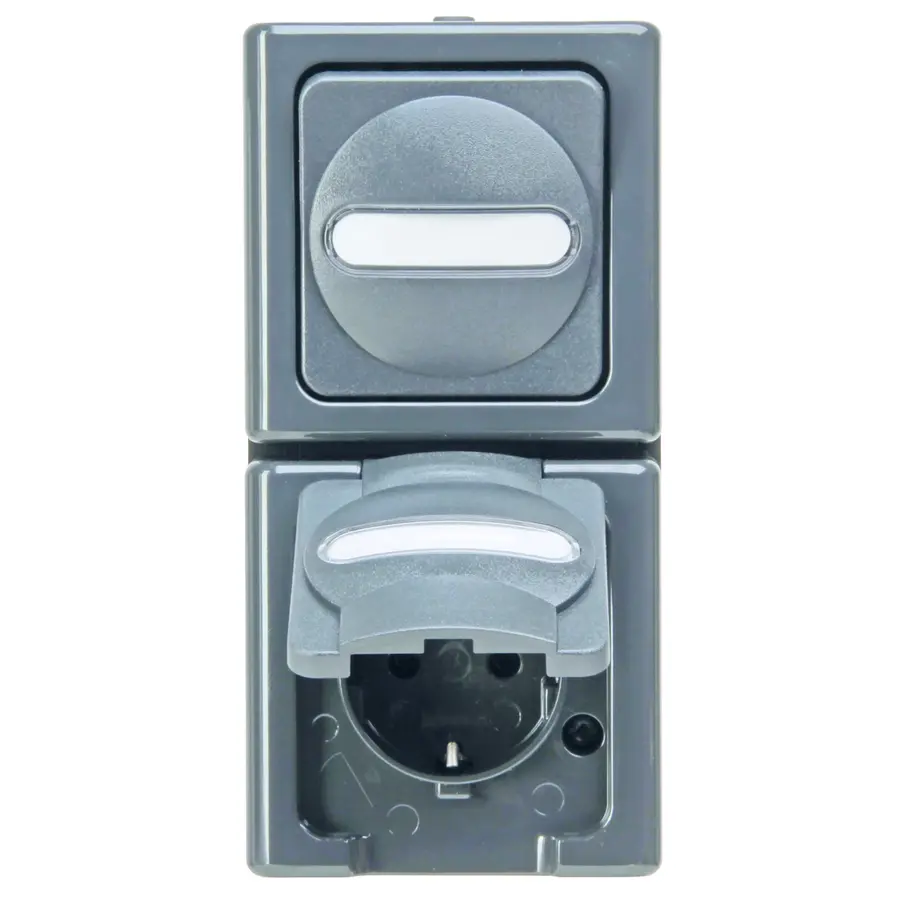 Kopp BLue Electric combinatie wisselschakelaar en stopcontact spatwaterdicht verticaal IP44 antraciet (130815000)