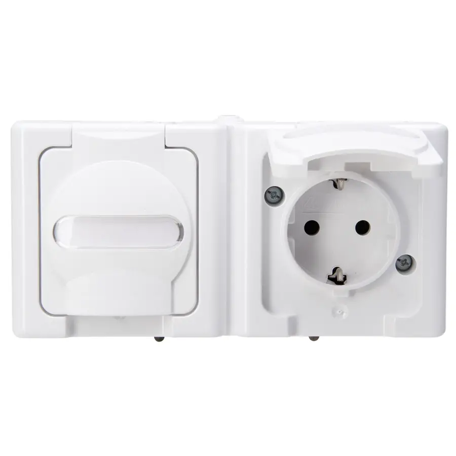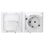 Kopp Blue Electric stopcontact met deksel en randaarde spatwaterdicht horizontaal 2-voudig IP44 arctic wit (131202003)