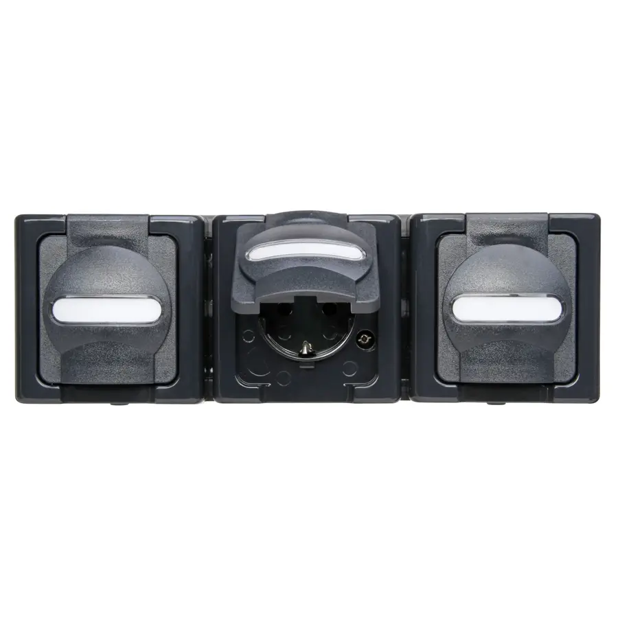 Kopp Blue Electric stopcontact met deksel en randaarde spatwaterdicht horizontaal 3-voudig IP44 antraciet (131315006)