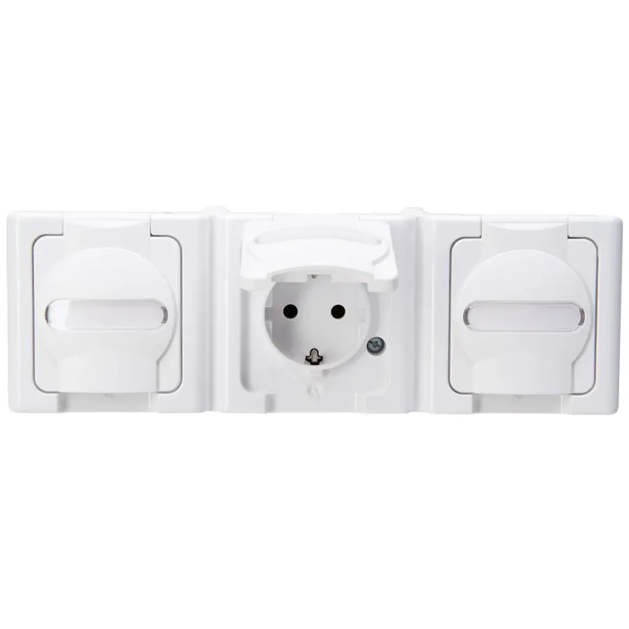 Kopp Blue Electric stopcontact met deksel en randaarde spatwaterdicht horizontaal 3-voudig IP44 arctic wit (131302006)