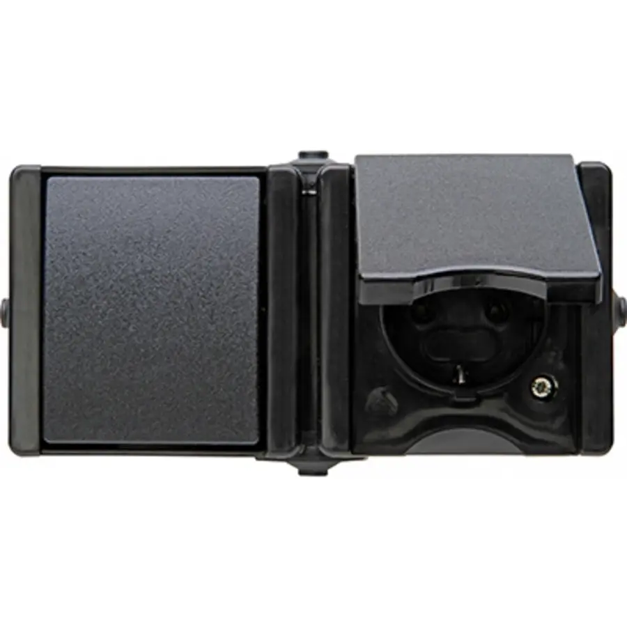 Kopp combinatie 1-voudig met randaarde met wisselschakelaar spatwaterdicht IP44 horizontaal – ProAQA zwart (139405000)
