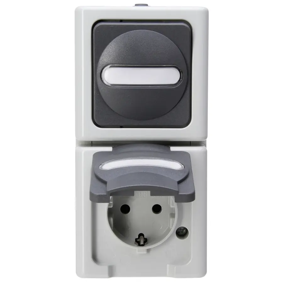 Kopp Blue Electric combinatie wisselschakelaar en stopcontact spatwaterdicht verticaal – grijs (130856009)