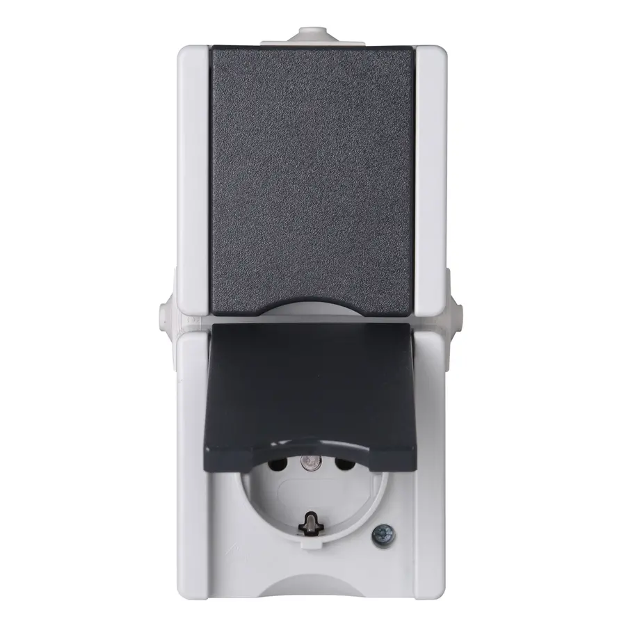 Kopp pro AQA stopcontact tweevoudig randaarde met klapdeksel spatwaterdicht voorbedraad