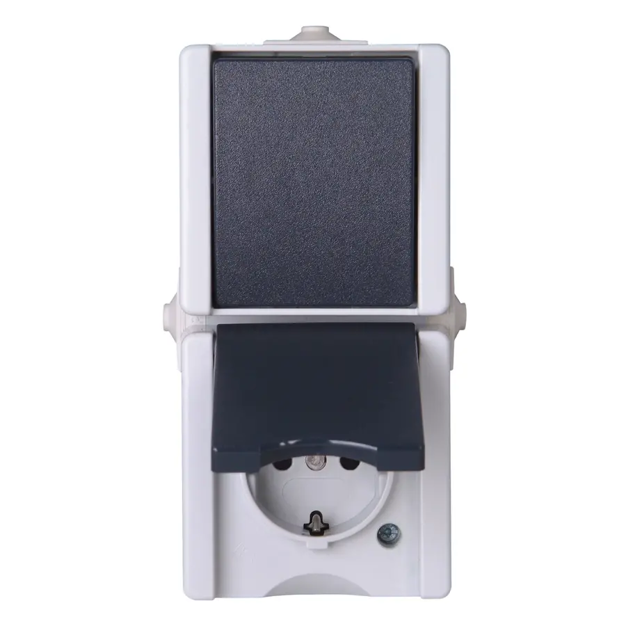 Kopp ProAQA combinatie wisselschakelaar en wandcontactdoos met randaarde spatwaterdicht verticaal – grijs (139356003)