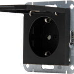 HK07 – wandcontactdoos 1-voudig geaard met deksel en shutter mat-zwart