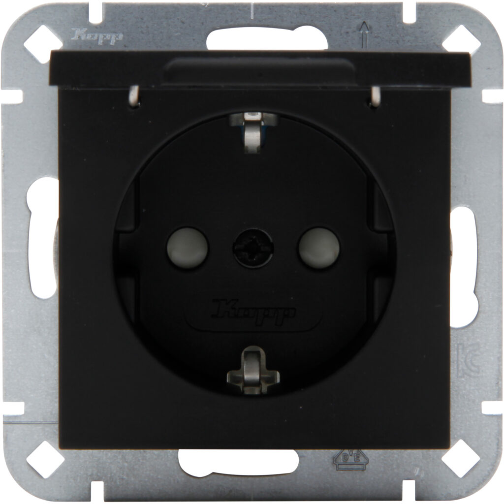 Kopp Wandcontactdoos 1V RA SH klapdeksel mat-zwart HK07