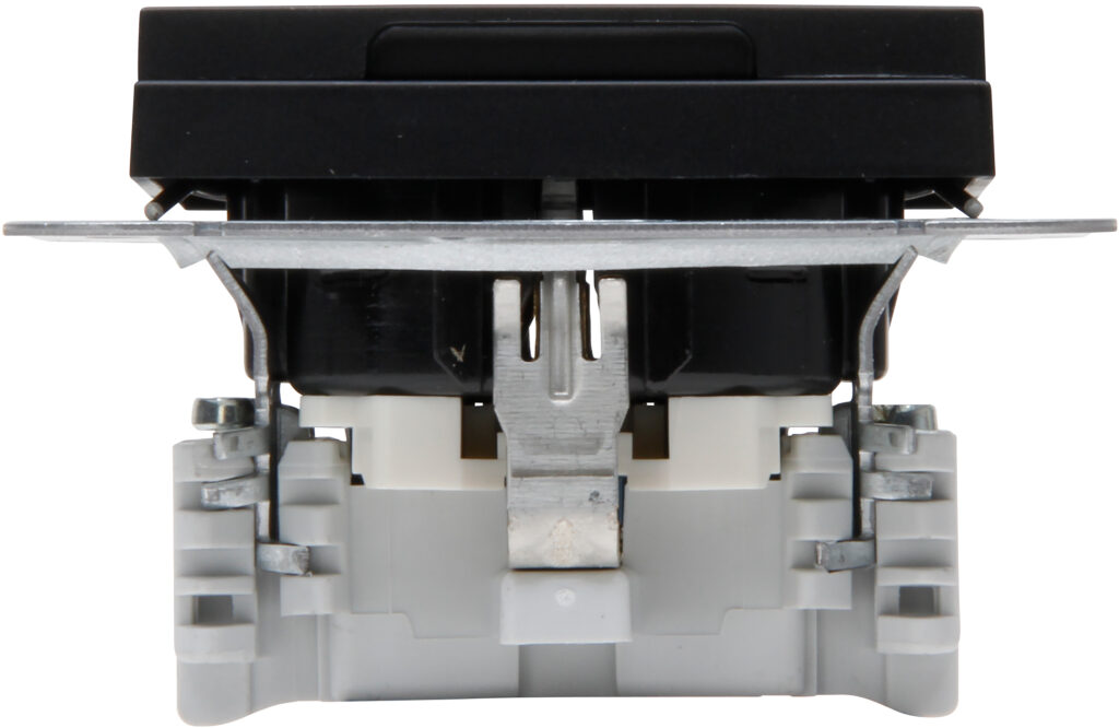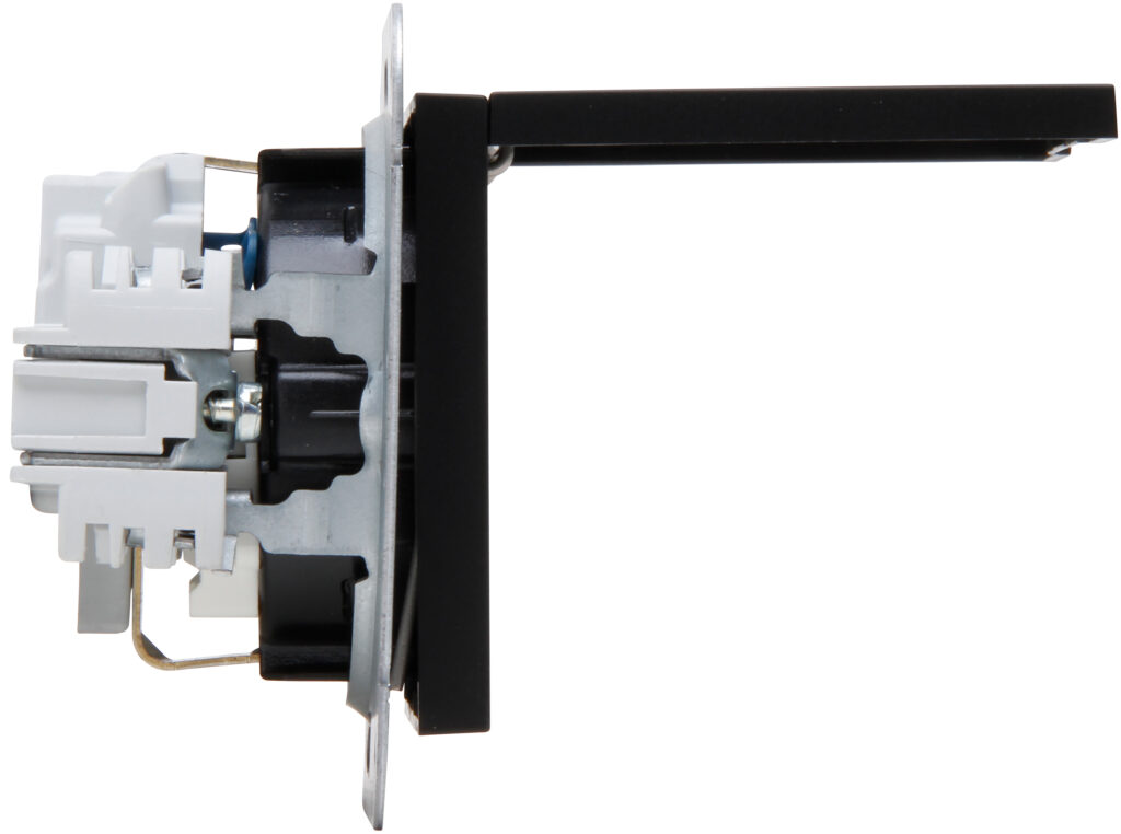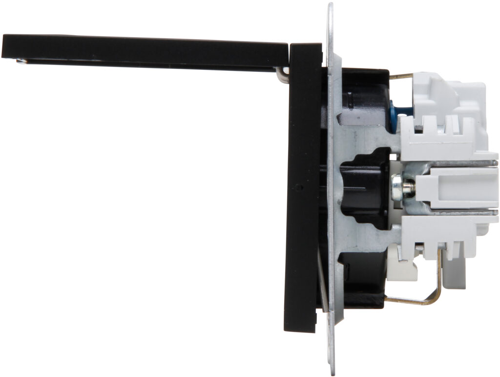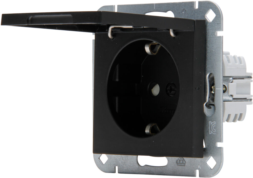 HK07 – wandcontactdoos 1-voudig geaard met deksel en shutter mat-zwart