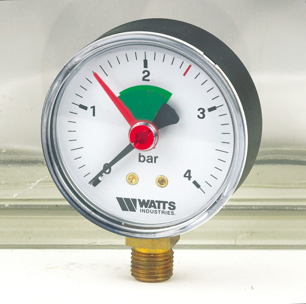 Watts MR buisveermanometer, behuizing kunststof, procesaansluiting messing, maat procesaansluiting 3/8″, buitendraad cilindrisch B, plaats aansluiting onder, schaalindeling (bar) 0 – 4bar, drukeenheid bar/psi, meetbereik 0 – 4, diameter behuizing 63mm, breedte behuizing 63mm, hoogte behuizing 63mm,