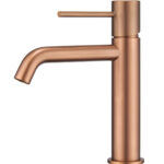 Eenhendel wastafelmengkraan uit de MONZA-serie. Messing kraanlichaam. Keramisch patroon Ø26mm TOP. 3/8″ slangen. Geborstelde roségouden afwerking.