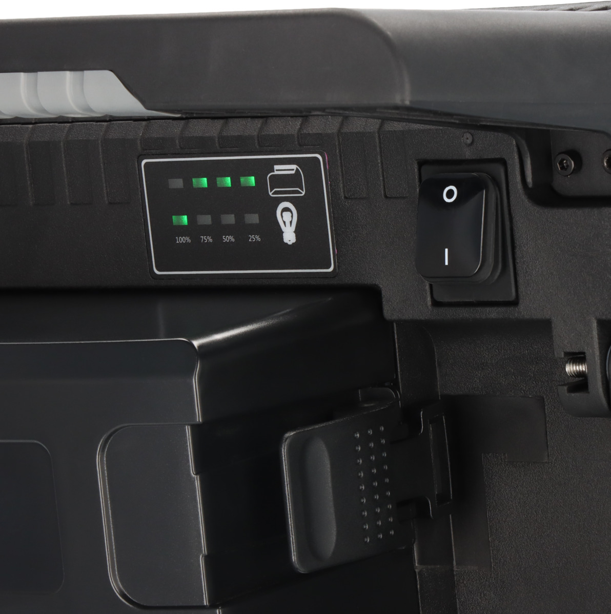 - Met 4 schakelniveaus (100% – 75% – 50% – 25%), direct vol vermogen bij inschakelen