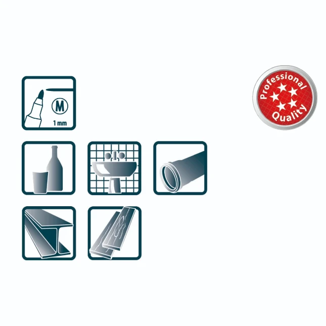 - Voor permanente markering op vrijwel alle ondergronden