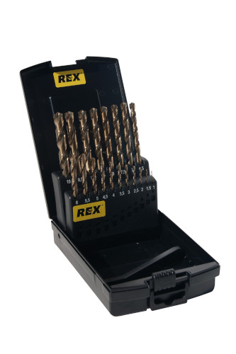 REX® set SteelMaster metaalboren HSS-Co DIN 338. De boor is voorzien van een cilindrische steekas. Wordt geleverd in een cassette.