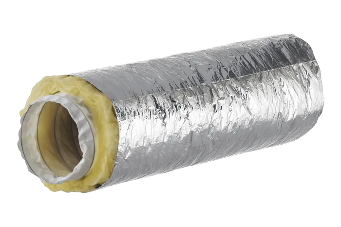 De Sonodec 25 TRD Flexibele Geluiddemper bestaat uit een geperforeerde aluminium laminaat binnenslang, thermisch en akoestisch geïsoleerd met een glaswol laag en uitgevoerd met een aluminium laminaat buitenslang. Een kunststof barrier tussen de slang en de glaswol voorkomt migratie van glaswoldeeltjes in de luchtstroom. Beide uiteinden zijn afgeplakt om kant en klare aansluitingen (manchet) te realiseren.