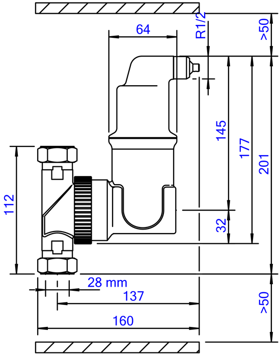 Spirovent RV2 luchtafscheider vertikaal en horizontaal te monteren – 28 mm klem UA028W