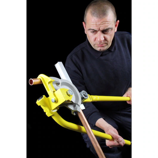• Door de hoekige gietvorm kan de buiger in een bankschroef worden vastgezet om het buigen te vereenvoudigen