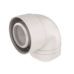 UbiFit Bocht voor het UbiFit Concentrisch Push-Fit systeem. Deze bocht is uitgevoerd met een binnenbuis voor de afvoer van rookgassen en een buitenbuis voor de toevoer van verbrandingslucht.