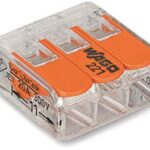 De Wago 221-413 lasklem (4050821808442) is een isolerend kunststof omhulsel met insteekopeningen. Je kunt hiermee twee of meer installatiedraden met elkaar verbinden. De WAGO serie 221 lasklemmen zijn wel 40% compacter dan de voorgaande varianten. Ideaal dus voor kleine en moeilijk toegankelijke ruimtes.