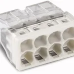 Met een lasklem kun je twee of meer installatiedraden met elkaar verbinden. Het is een isolerend kunststof omhulsel met insteekopeningen.