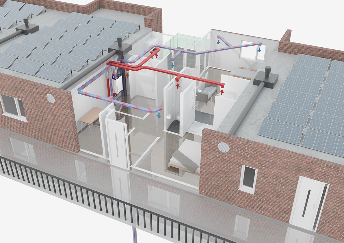 - De meest installatie- en servicevriendelijke WTW-unit met unieke aansluitmogelijkheden (o.a. achter het knieschot)