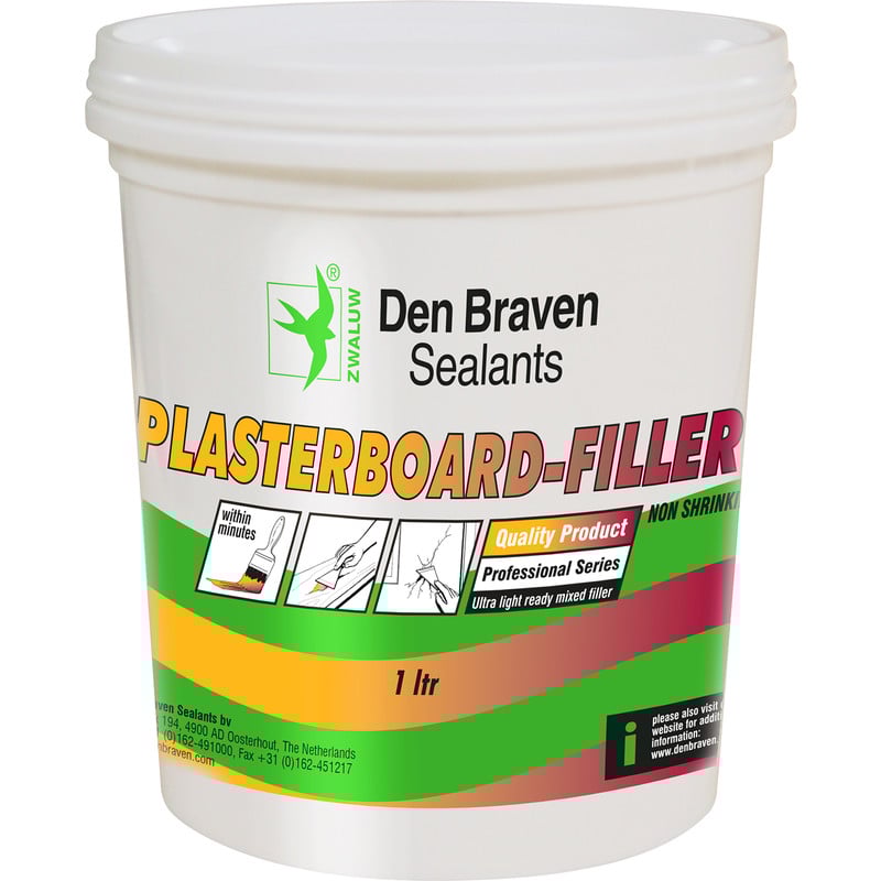 | Applicaties | Zwaluw Plasterboard-Filler is speciaal ontwikkeld voor het in één keer vullen en uitvlakken van naden en schroefgaten in gipskarton wanden en plafonds. Ook voor het in één keer vullen, repareren en gladstrijken van gaten en barsten in steenachtige ondergronden zoals stucwerk, beton en sierpleister. |